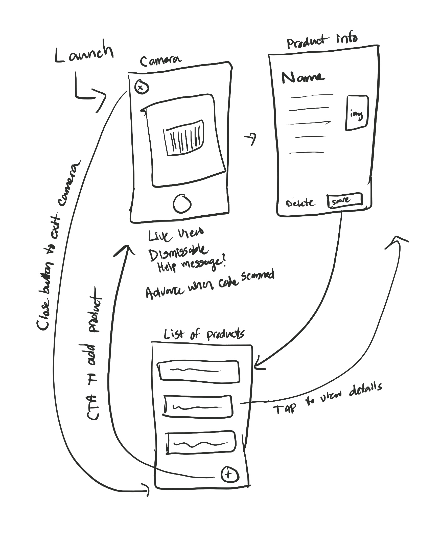 - Camera screen, to scan barcodes